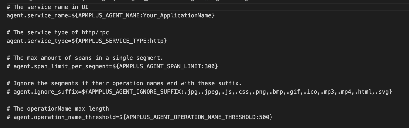 This is the Volcengine’s version, and check SkyWalking agent.config